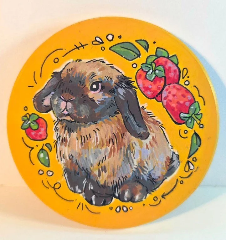 Sarah LeBlanc is a Fine Arts student at the University of Manitoba who creates playful, animal-inspired artwork with a touch of humor. She primarily works with acrylic, watercolour, and alcohol markers Her work includes prints, stickers, clay charms, original pieces, and custom pet portraits.